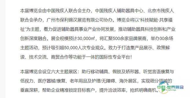 作为全球三大、中国领先的康复辅助器具展会之一,中国国际福祉博览会暨中国国际康复博览会(CR EXPO)肩负时代责任,计划于2026年9月3日至5日在北京国家会议中心举行。