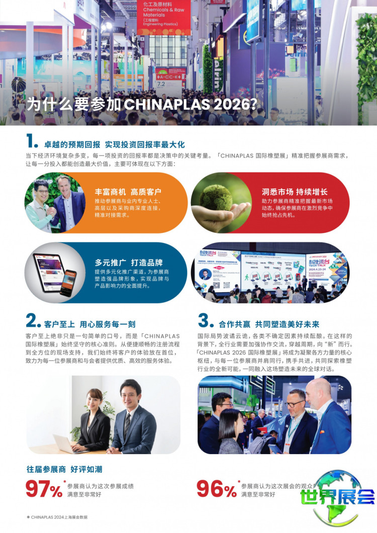 雅式上海橡塑展(CHINAPLAS)始于1983年,是备受全球关注的橡塑行业年度盛会——CHINAPLAS国际橡塑展。它汇集了最具革新性的橡塑解决方案与行业资讯,堪称激发灵感与探寻时代机遇的“关键平台”,同时也是贸易采购、技术发布与交流的核心枢纽。