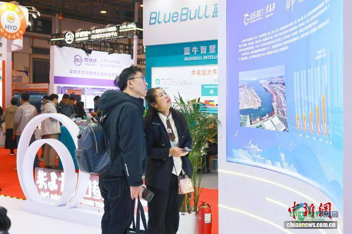 图为参观者在山东港口青岛港展区了解该港口情况。张孝鹏 摄