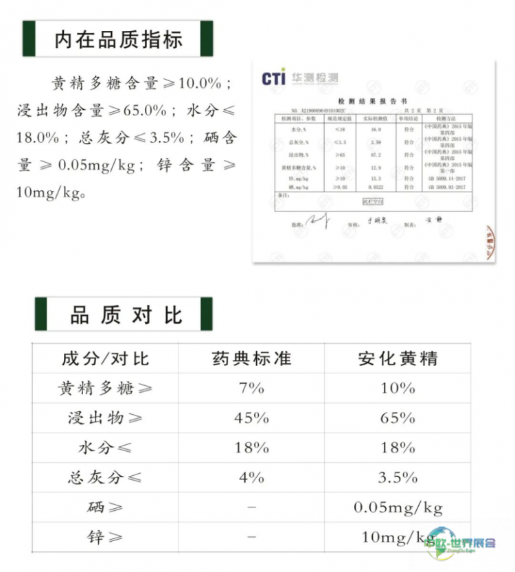 得益于独特的生长环境,安化黄精具备了优良的道地品质。检测对比表明,安化黄精的黄精多糖含量普遍在10%至15%之间,最高可达22%,显著高于药典标准(≥7.0%);灰分含量≤3.0%,优于药典标准(≤4.0%);浸出物含量达到65%至90%,明显高于药典标准(≥45%)。