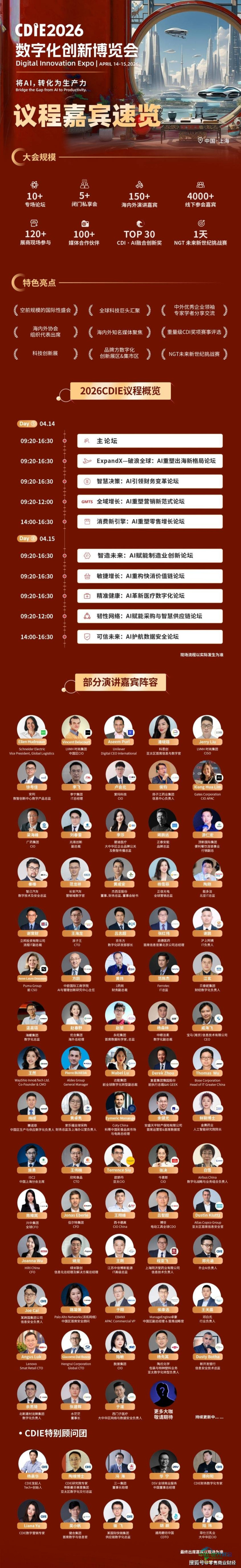 全球数字化与智能化融合的浪潮持续推进,人工智能技术正从理论探索迈向大规模的产业应用,成为企业持续发展与实现高质量增长的关键动力。距离大会开幕还有12天,2026年第十二届CDIE数字化创新博览会,定于2026年4月14日至15日在中国上海盛大举行!