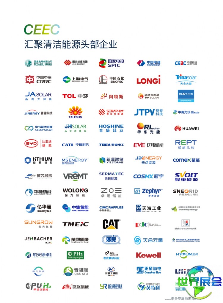 中国北京国际清洁能源博览会CEEC获得了国家相关部门的充分肯定,并得到了国家电网、南方电网、华能集团、大唐集团、华电集团、国家能源集团、国家电投集团、三峡集团、中核集团、中广核集团、中国电建集团、中国能建集团以及比亚迪、隆基股份、天合光能、晶澳太阳能、正泰新能源等电力央(国)企和新能源龙头制造企业的鼎力支持。