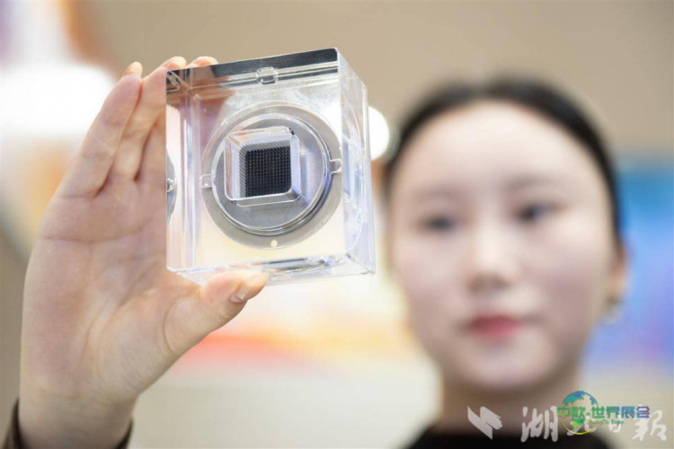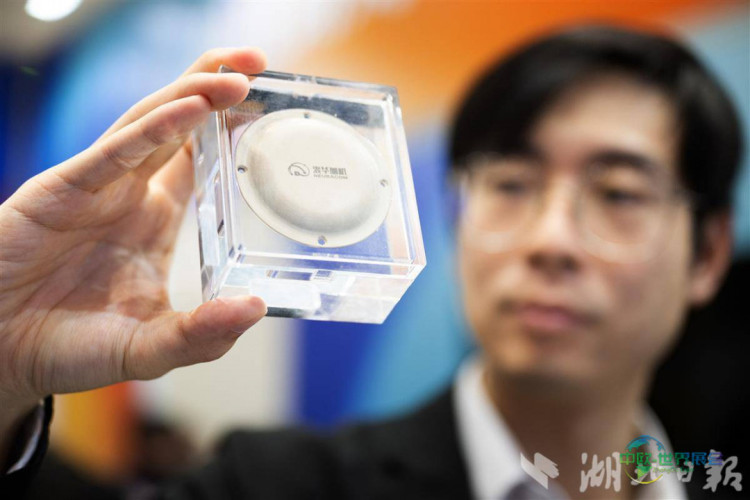 4月8日,于本届健博会首次设立的科技助残展区,衷华脑机公司展示了其高通量植入式脑机接口。(湖北日报全媒记者 任勇 魏铼 摄)