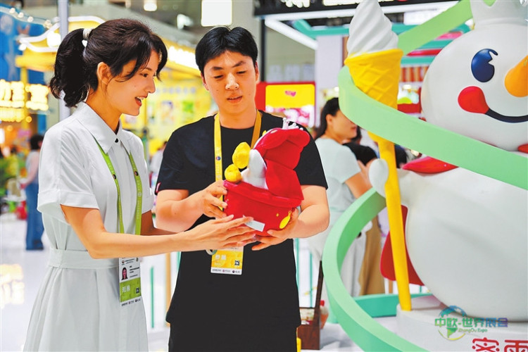 “彩钻真是头一回见!”“这是和游戏联名的产品吗?”……在河南展区入口处,首次参展的河南天璇半导体科技有限责任公司展台前聚集了许多年轻消费者。“看到现场反响这么热烈,我们觉得来参展是非常正确的决定。”该公司销售经理宋永波告诉记者,他们希望借助消博会平台,寻找到更多具有创意的合作伙伴,共同开发契合“Z世代”审美趣味的潮流新品,与年轻消费群体建立更深度的连接。