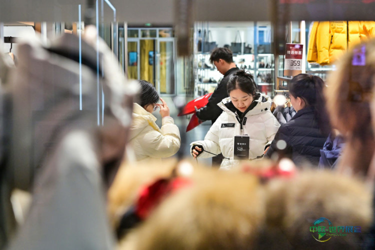 消费者正在天津市滨海新区的一家商店挑选羽绒服。新华社发(杜鹏辉 摄)