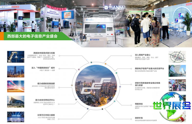 中国成都电子展·西部(China Electronics Fair)是中国西部地区最具历史底蕴和行业影响力的电子行业盛会。该展会创办于1964年,凭借前沿的基础电子技术,推动中国电子产业的自主研发与创新,伴随中国电子行业一路发展壮大。