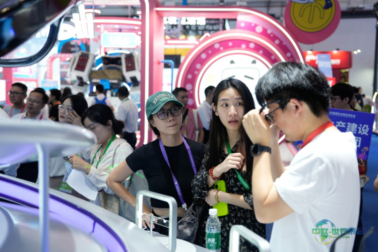 参观者正在试用AI智能眼镜。郝飞 摄
