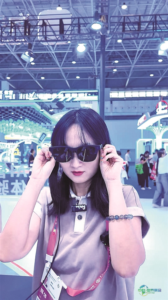 图②:在科技消费展区,观众体验即将面市的最新款XR眼镜。光明网记者 杨亚楠摄/光明图片