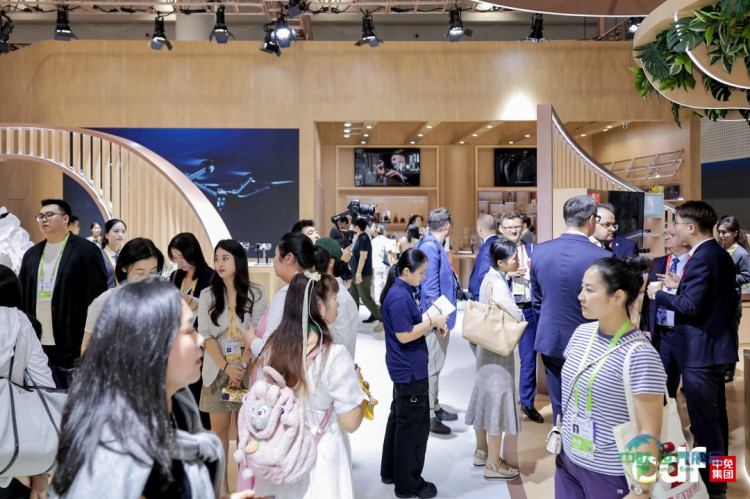 除了线下门店的全面联动,中免集团在消博会主展馆的展位也颇具亮点,以其独特的设计和丰富的展品吸引了全场目光。中免集团精选了全球一线品牌阵容,现场展出了涵盖高端精品、腕表珠宝、美妆护肤、3C电子、酒水等五大品类的国内外优质商品。