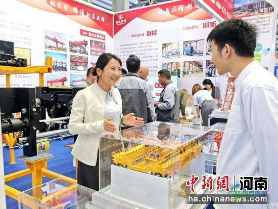 图为客商驻足了解展出的起重设备。王士豪 摄