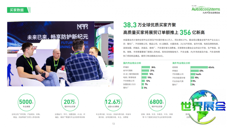 作为全球首个同时涵盖乘用车与商用车全品类,融合新车发布、汽车科技、零部件、改装及文化于一体的B2B2C汽车生态展贸平台!九州汽车生态博览会预计展览面积将超过60万平方米,将汇聚约120个汽车品牌、7000家产业链上下游企业,以及超过40万名国内买家和1.2万名海外买家参与。此次活动不仅是全球采购与行业趋势发布的年度盛事,更是驱动汽车产业链创新发展的重要引擎。