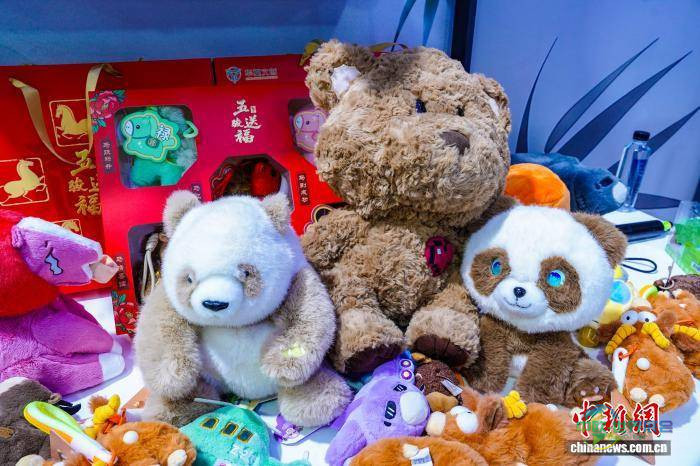 图为三款不同造型的AI智能陪伴毛绒文创产品。刘一江 摄