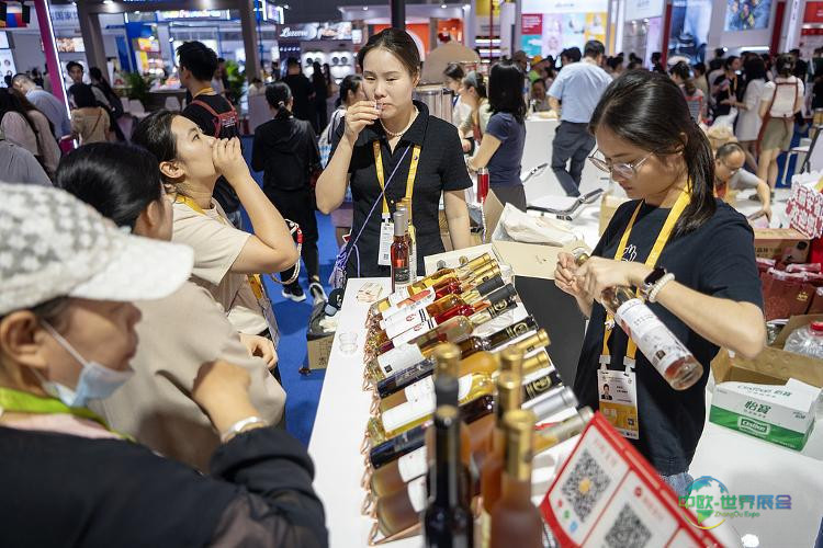 第六届中国国际消费品博览会期间,参观者在主宾国加拿大馆展台品鉴红酒。