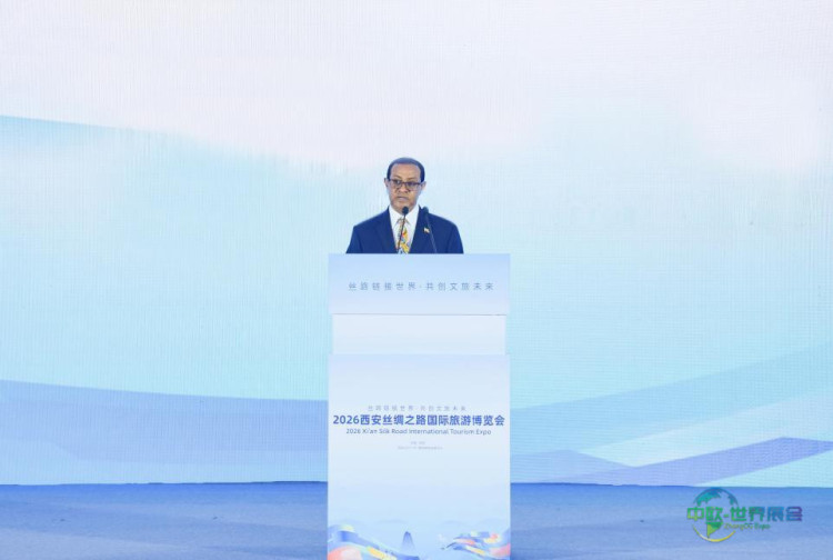 4月17日下午,作为2026西安丝绸之路国际旅游博览会的重要组成部分,“一带一路”旅游发展交流活动在西安国际会展中心顺利举行。埃塞俄比亚驻华大使塔费拉·德贝·伊马姆与陕西省文化和旅游厅副厅长杜金根分别发表致辞。来自埃塞俄比亚、新加坡、乌拉圭等多个国家及国际旅游组织的代表,以及国内各省市相关部门和代表团成员等超过120人参与了本次活动。