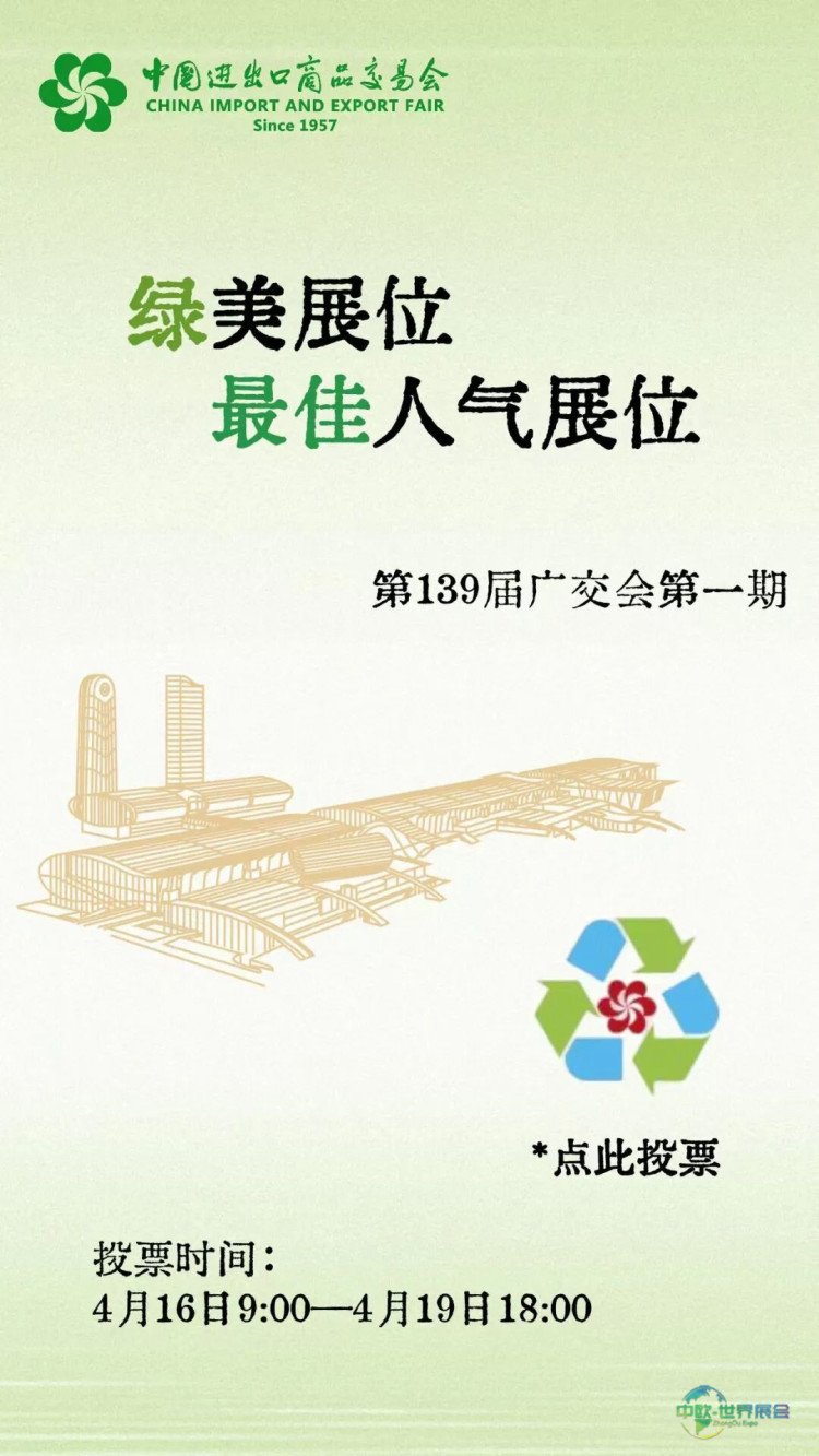 【绿美广交】人气battle已开启,第139届广交会第一期“最佳人气展位”等你来投