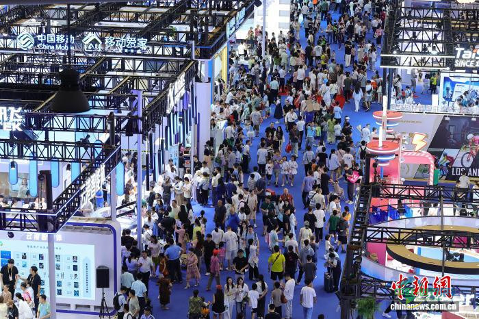 4月18日,第六届中国国际消费品博览会收官当天,民众在科技消费展区参观。 中新社记者 骆云飞 摄
