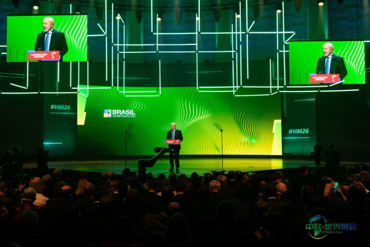 4月19日,作为主宾国代表的巴西总统卢拉在德国汉诺威工业博览会开幕仪式上发表讲话。