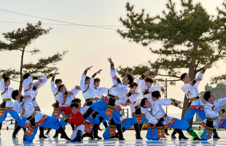 此番,艺术团前往韩国,期望通过艺术交流促进人文互鉴,展现中华优秀传统文化的独特魅力和新时代中国大学生的精神风貌。开场节目《潮涌花繁》由学校精心策划,通过四个板块内容及色彩各异但主题连贯的舞蹈呈现,融合了中国传统舞蹈形式与现代审美元素,从大海波涛到百花争艳,从涌动水袖到万马奔腾的热烈,层层推进,为韩国观众献上了一场兼具灵动雅致、豪迈大气与文化内涵的视听盛宴。
