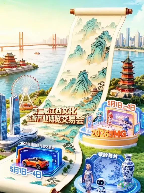 本届文旅博览会期间,南昌绿地国际会展中心还将同期举办2026南昌国际汽车交易会与2026动漫游戏博览会——看全球好物、赏新款豪车、逛二次元盛宴,三大展会一次打卡,五一假期玩到尽兴!