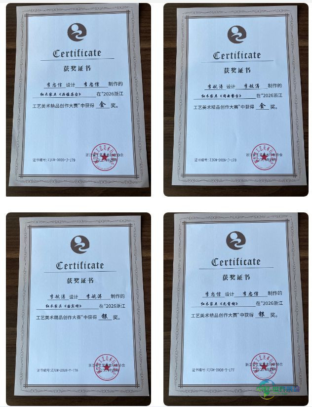 4月24日至26日,第十四届中国(浙江)工艺美术精品博览会在丽水国际会展中心圆满落幕,这场盛会汇聚了近300位国家级和省级工艺美术大师。李忠信红木满载荣誉而归,在本届展会上成功斩获2项金奖和2项银奖的佳绩。