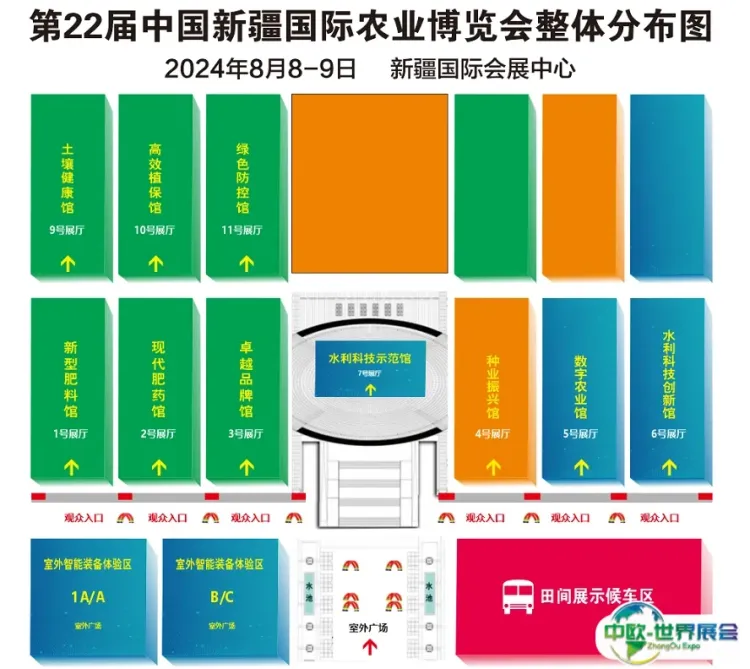 2024年新疆农博会的展区设置已全面揭晓,共划分为11个主题展区(含室外广场)以及新疆农科院综合试验场——新疆种交会田间展示区,每个展区各具特色,链接全农业产业链,充分彰显了农业产业的多元性、创新性。展区内的丰富内容将充分展示农业科技的前沿成果,体现农业产业在推动经济社会持续健康发展中的重要作用。