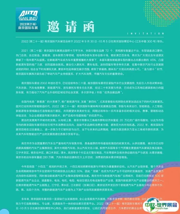 南京国际汽车展览会2025在线预定展位 中欧国际为您呈现展位图、展位价格、参展商名录、会刊申请、邀请函申请、门票购买、签证服务、展位搭建等。想了解更详细资料,请联系我们~