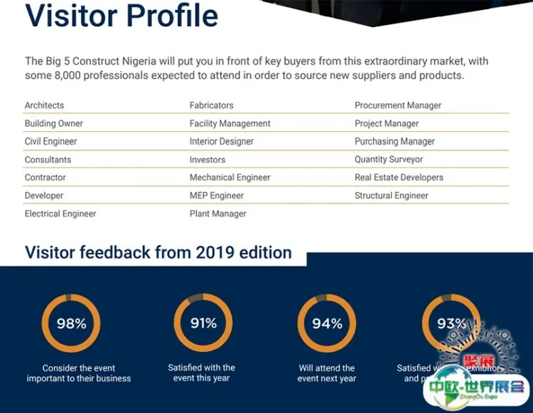 尼日利亚建材、卫浴五金、制冷五大行业展览会(Big5 Construct Nigeria)更是中国建材企业进军最佳贸易平台。