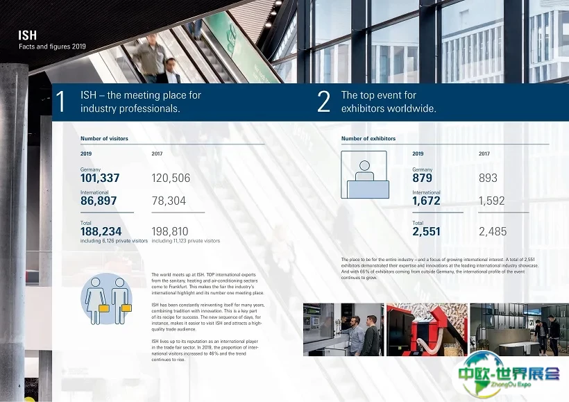德国法兰克福暖通制冷展-法兰克福卫浴展(ISH)不仅提供了大量的技术信息,而且也是供求双方会面洽谈的场合,给参展商和参观者提供了一个非常有吸引力的打开国际市场的通道,是卫浴设施供暖及空调企业展示新产品,发布新信息的最好窗口。