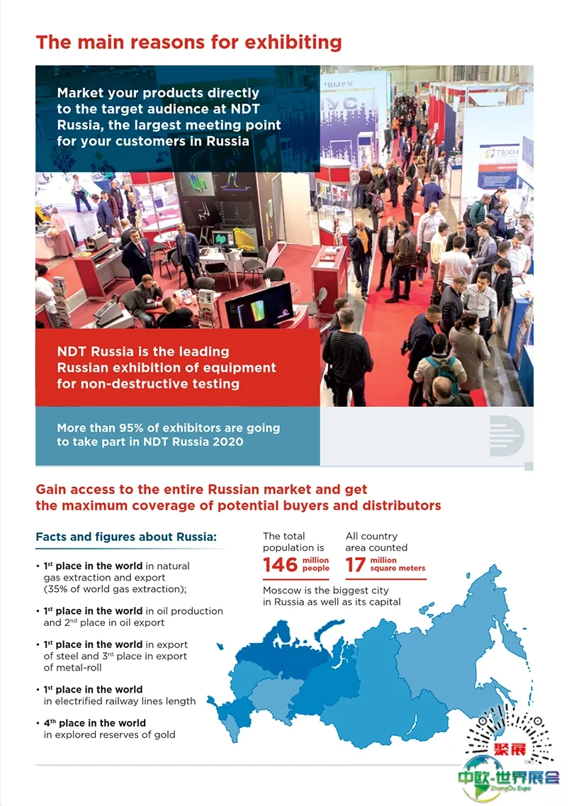 俄罗斯莫斯科无损检测设备及技术诊断展NDT Russia已经成为企业开拓市场、寻求商业合作的重要平台。同时,展会组织的专业研讨活动也为参展商提供了展示产品、分享经验、了解对手、发现新知、维护客户的宝贵平台和绝佳契机。