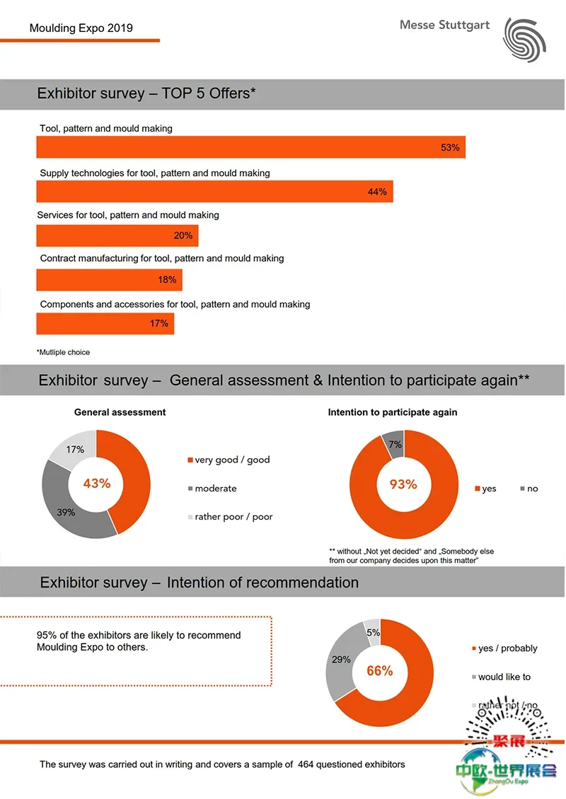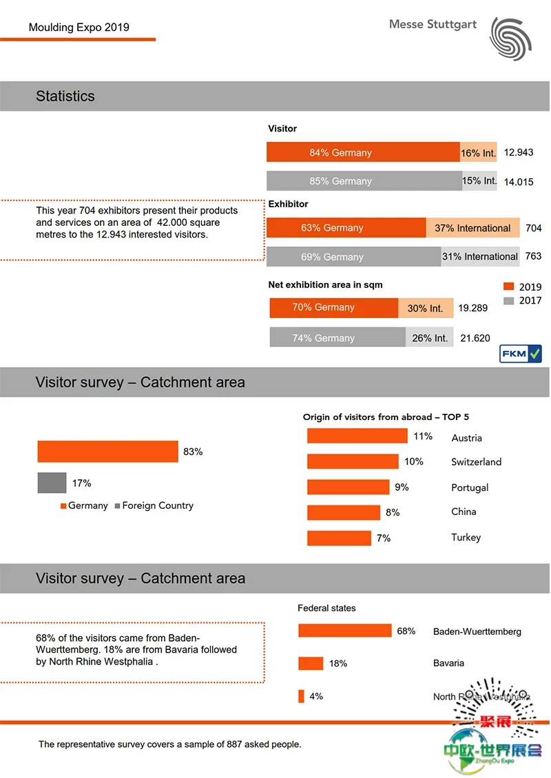 德国斯图加特模具展Moulding Expo上届展会总面积31500平方米,参展企业617家均来自中国、日本、法国、意大利、俄罗斯、挪威、新加坡、泰国、捷克等,参展人数达21800人。