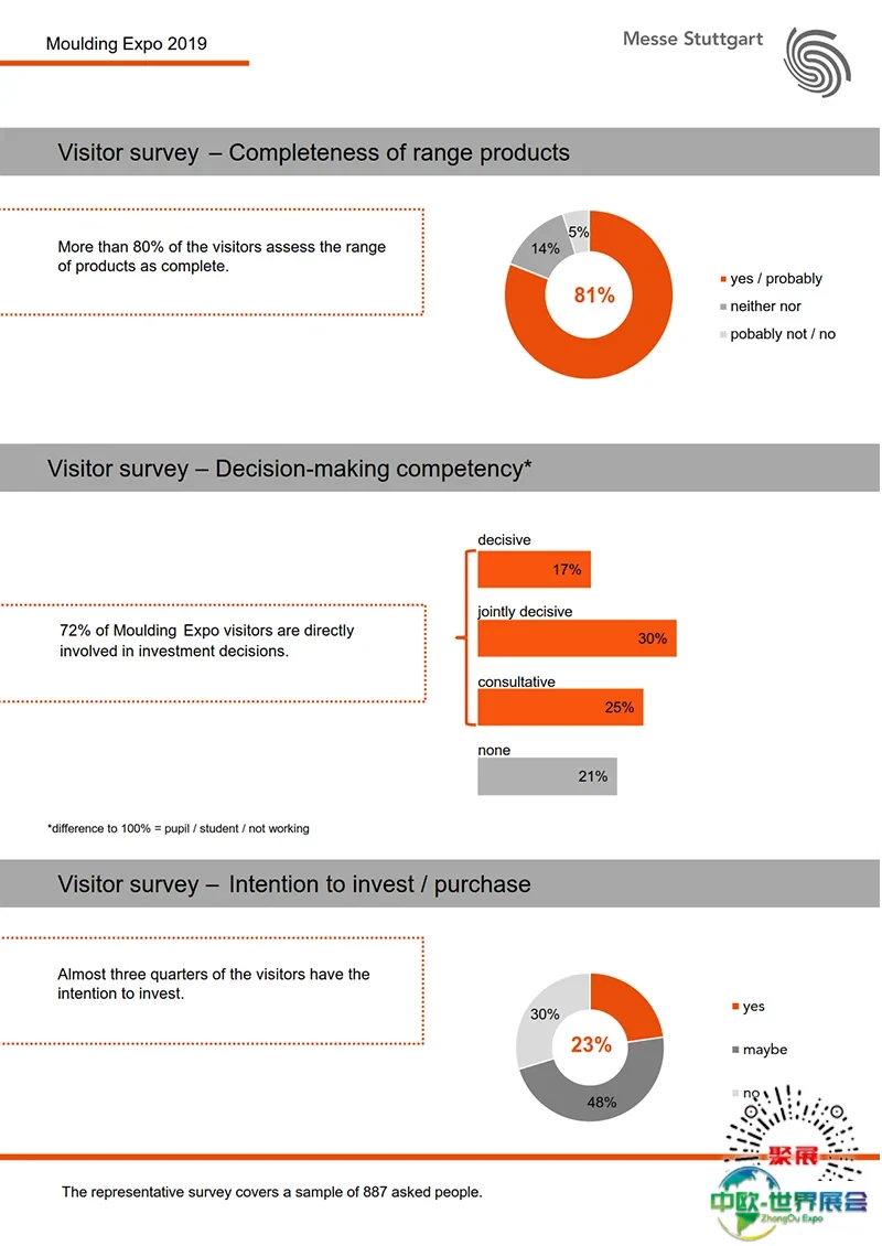 德国斯图加特模具展Moulding Expo观众主要来自于汽车行业、模具行业、机床厂家、包装及塑料行业、精密加工、航空航天、医疗设备、建筑设计等各个工业领域。德国斯图加特模具展Moulding Expo更是中国模具企业进军德国最佳贸易平台。