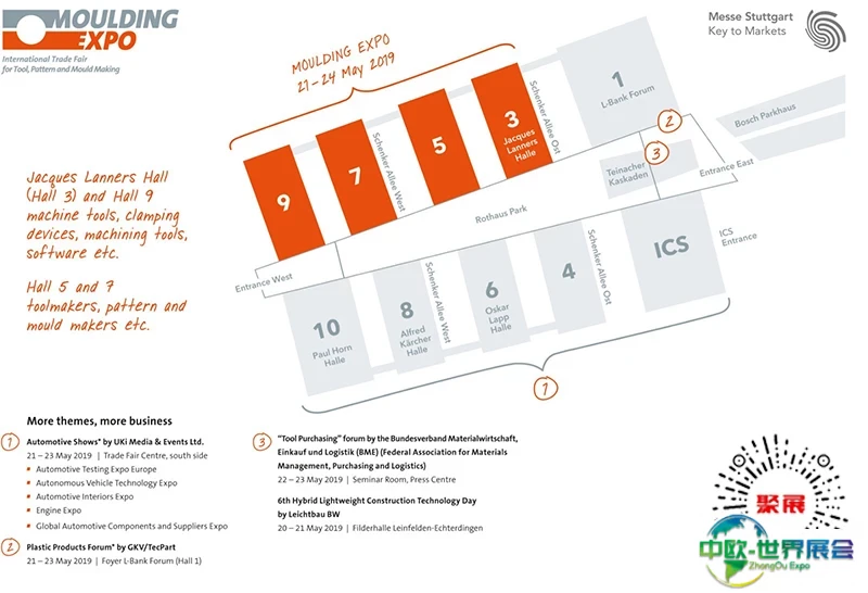 德国斯图加特模具展览会(Moulding Expo)是欧洲模具制造先进水平的专业技术展览会。创始于2015年,由德国斯图加特展览公司主办。由德国机床制造商协会(VDW)、德国工具模具制造商协会(VDMF)、德国机械设备制造业联合会(VDMA)三大德国机械类专业协会支持举办的大型国际专业展览会。
