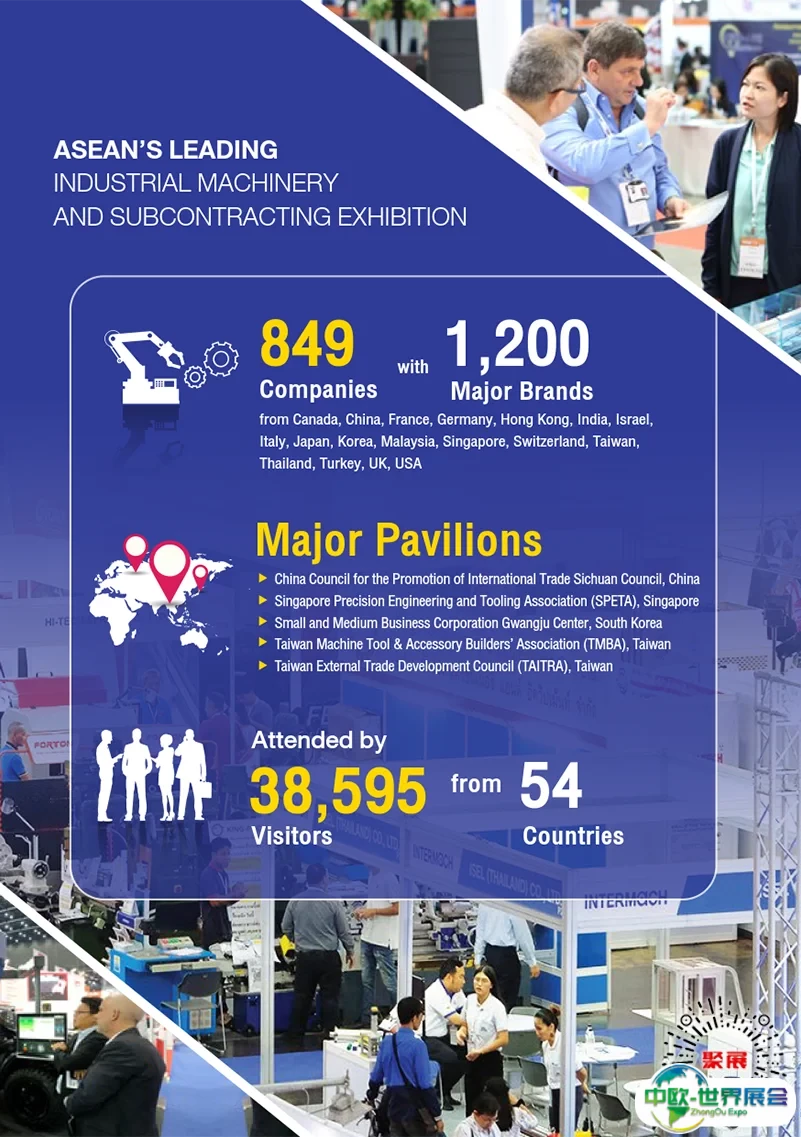 泰国曼谷机床及金属加工展览会 展览规模:展览面积48000㎡平米、观众人数40500名、参展商859家 举办时间:2025.05.14-05.17