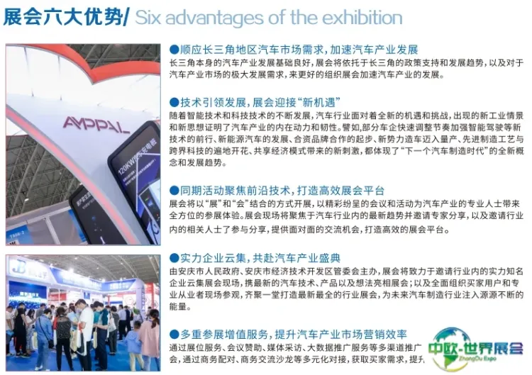 展会立足安庆,依托安庆的地理优势和强劲的市场需求,向周边乃至全国扩展,充分整合长三角区的行业优势,促进与全国产需对接、协同创新,促进新旧动能的产换,推进产业链上下游合作创新和持续健康发展,以“点”辐射长三角乃至华中、华北和华东等全国的汽车产业市场。