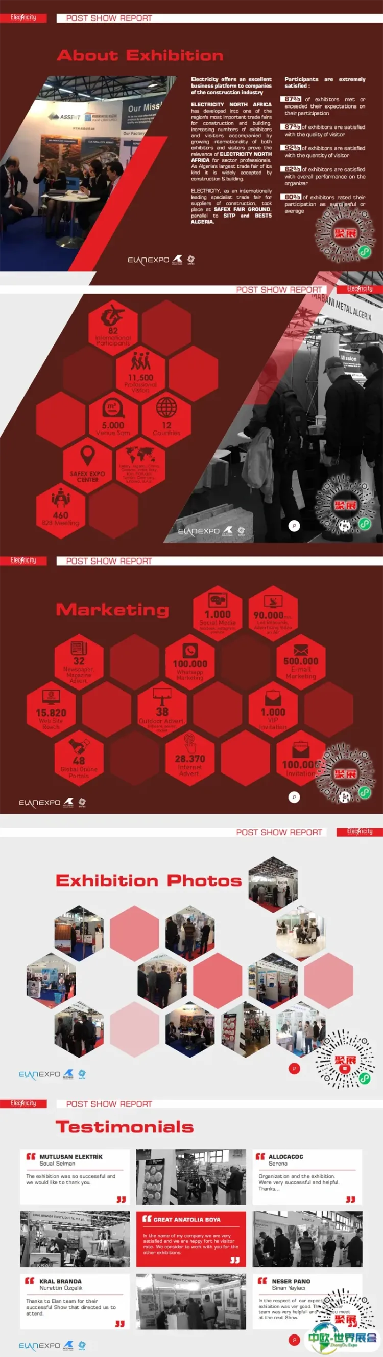 阿尔及利亚电力展Electricity上届展会总面积15000平方米,参展企业308家均来自中国、迪拜、土耳其、南非、澳大利亚、加拿大、巴西、俄罗斯、墨西哥等,参展人数达16200人。