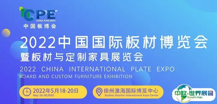 2022中国国际板材与定制家居展览会5月18-20日与您相约徐州淮海国际博览中心,欢迎广大板材、家居企业及经销商的参与,不见不散!