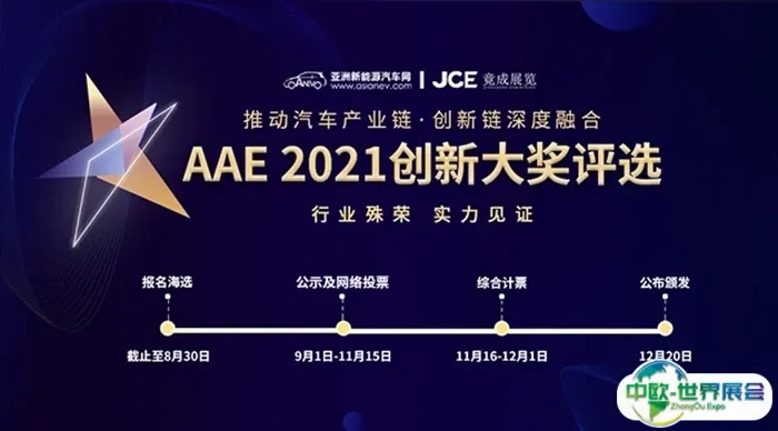 为进一步推动汽车产业链、创新链的深度融合,打造紧密合作的创新生态,推进创新产业技术标准,促进技术创新成果转移转化。竟成展览、亚洲新能源汽车网将在AAE 2021展览之际,面向全球先进汽车技术产业开展AAE 2021创新大奖评选活动。