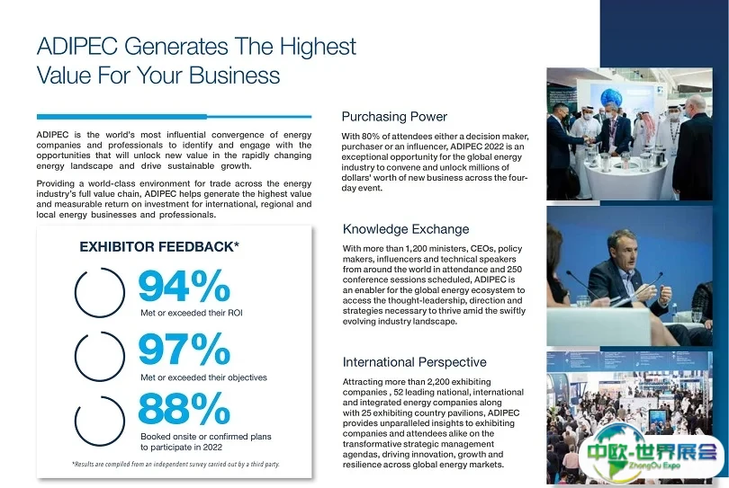 2024中东阿联酋阿布扎比石油展览会在线预定展位 中欧国际为您呈现展位图、展位报价、参展商名单、会刊申请、邀请函申请、门票预定、签证服务、展位搭建等。想了解更详细资料,请联系我们~