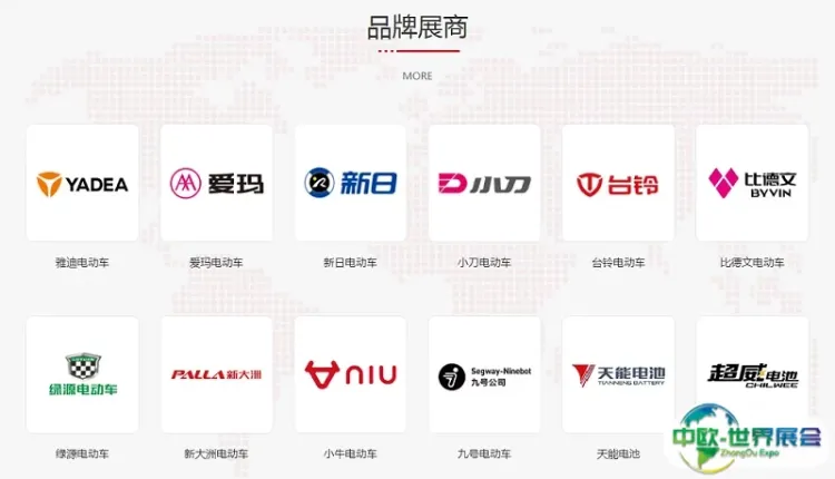 主要参展主要品牌有:新日、绿源、新大洲(派电)、萨博(五星黑马、杰宝大王)、格林豪泰、宝岛、大形小行、永久、凤凰、乐行(智迈)、雷迈、国威、豪晨、倍特、今日阳光、摩动青春、格士铃、飞鹤、正博、恩途、朗翔、俊超、鸿迅、骅利、立峰、宇锋、锋鸟、鸿尔达等两轮、三轮、低速四轮整车品牌。