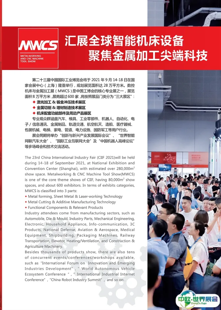 作为中国最具代表性的机床展会之一,定位前瞻布局,能真实反馈技术发展、经济和趋势。上海国际数控机床与金属加工展览会(MWCS)为制造商和供应商提供领先制造业关联工作平台推销他们的机器、产品和服务,并在日新月异的数字化的市场中更加引人关注。