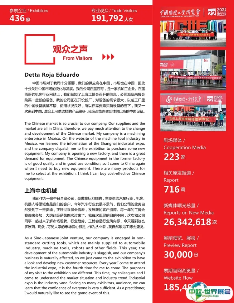展览规模:展览面积287900㎡平米、观众人数181346名、参展商2665家