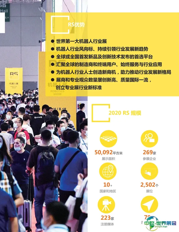 上海国际机器人展览会(RS)汇聚全球的制造商和终端用户、始终服务于行业应用,展商和专业观众数量屡创新高、质量国际一流,创立专业展行业新标准;是全球或全国新品首发及创新技术发布的首选平台,已被誉为世界第一大机器人行业展。