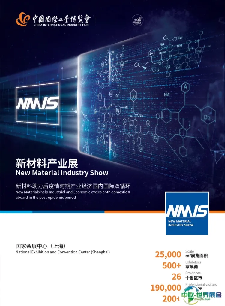 上海国际新材料产业展览会(NEW MATERIAL INDUSTRY SHOW简称:NMIS)是中国新材料产业最具影响力的工业品牌展览会。致力于扩大国际技术与产业合作,提升新材料产业创新应用的核心竞争能力,为政府、协会、企业等构建合作交流的平台。