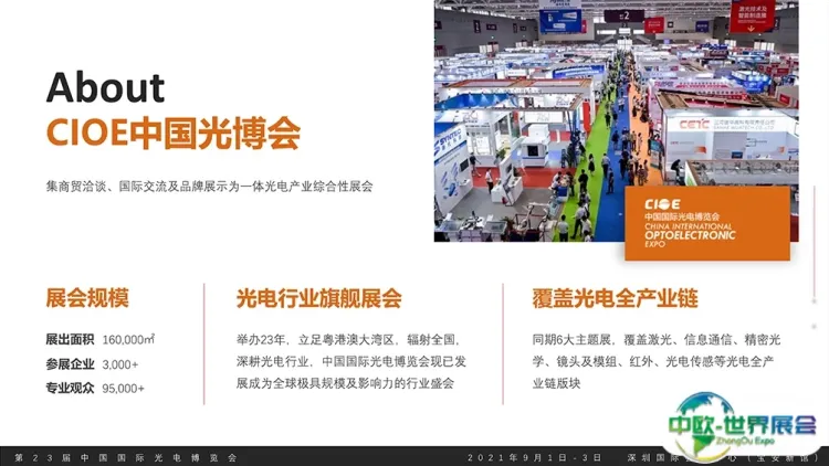 深圳光电子创新展2025在线预定展位 中欧国际为您呈现展位图、展位价格、参展商名录、会刊申请、邀请函申请、门票购买、签证服务、展位搭建等。想了解更详细资料,请联系我们~