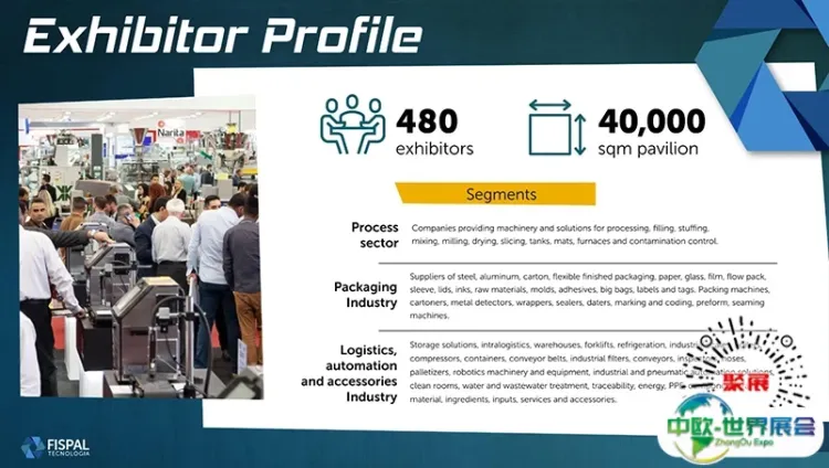 巴西圣保罗食品加工展FISPAL TECNOLOGIA上届展会总面积70000平方米,参展企业1400家均来自中国、中国台湾、日本、韩国、印度、印尼、西班牙、意大利、美国、智利等,参展人数达58000人。巴西圣保罗食品加工展FISPAL TECNOLOGIA为餐馆、面包店、酒吧、各式快餐连锁店、甜品店、超市及便利店、医院、学校、酒店、诊所、健康馆及各式美容院,甚至是公共机构等提供整合的食品饮料资源。