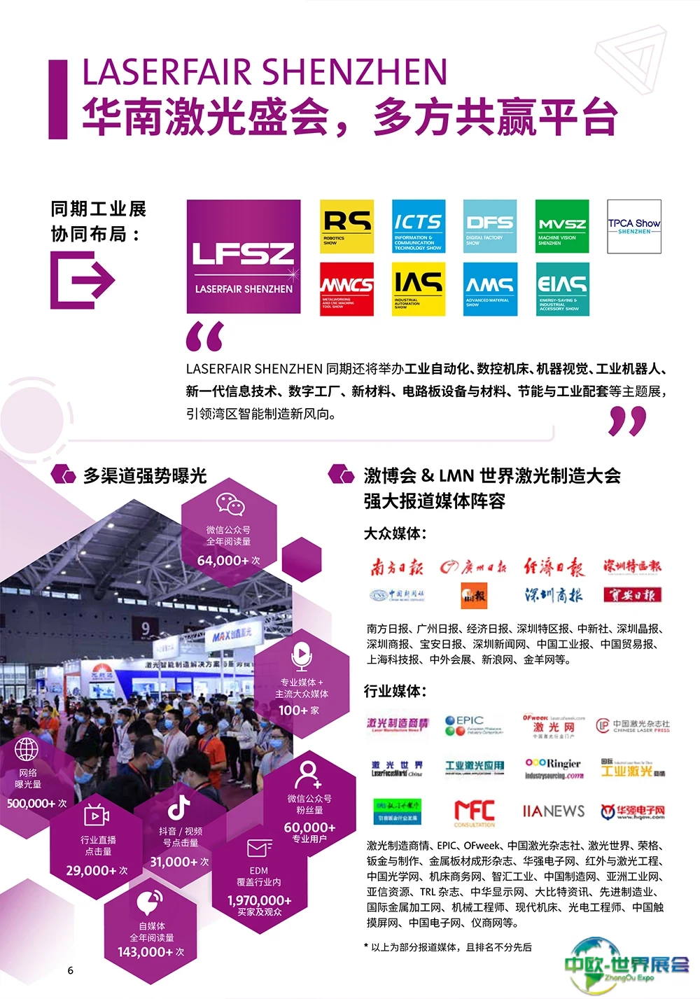 深圳国际激光技术展览会(LASERFAIR SHENZHEN)专注于激光生产及创新应用,关注激光器与光电子、光学与光学制造、智能仪器、成像技术、检测与质量控制、机器人、柔性生产设备、激光加工设备、3D打印设备,聚焦激光技术在汽车、金属加工、电子制造、集成电路、通信、医疗、能源、轨道交通、家电等多个行业领域的最新成果。