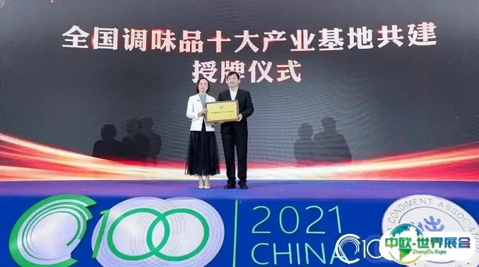 峰会上,中国调味品协会常务副会长白燕为河南临颍县人民政府进行了“全国调味品十大产业基地共建”授牌。