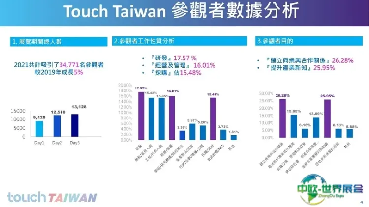 近年来也整合相关应用领域,包括商用显示、数位看板、公共显示、工业用显示器、穿戴显示、车载显示、光电应用等产业,以更丰富的面貌呈现给所有与会者。多样化的客户也反应了对于产品采购需求的多元化。台湾智慧显示展Touch Taiwan为来自世界各地参展商提供了一个绝佳展示的交流平台。
