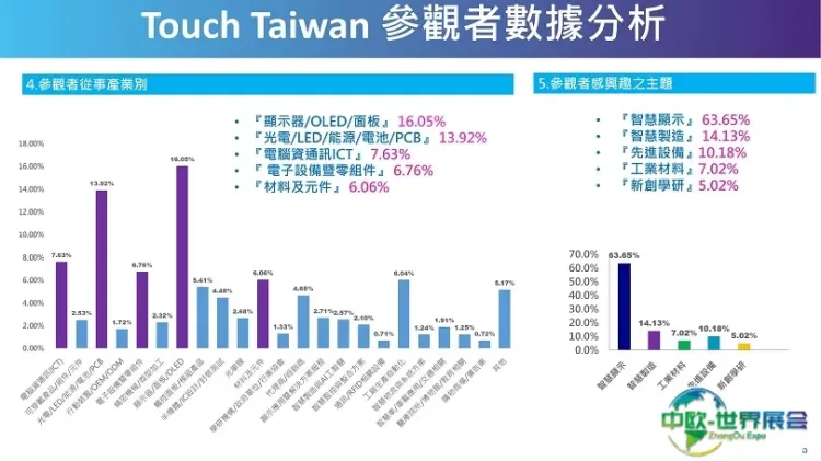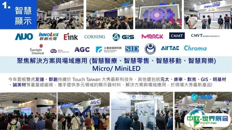 台湾智慧显示展Touch Taiwan除了在原有的显示器产业链如:光电、半导体、智慧制造、自动化、机器人、材料与元件、机器视觉、电子生产制造设备等领域外。