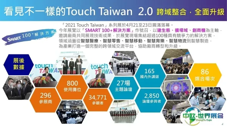 台湾智慧显示展览会(Touch Taiwan)是台湾最大规模、最权威的智慧显示展览会。目前全球最具影响力的显示器产业链展之一,是连结台湾高科技产业的代表展会。